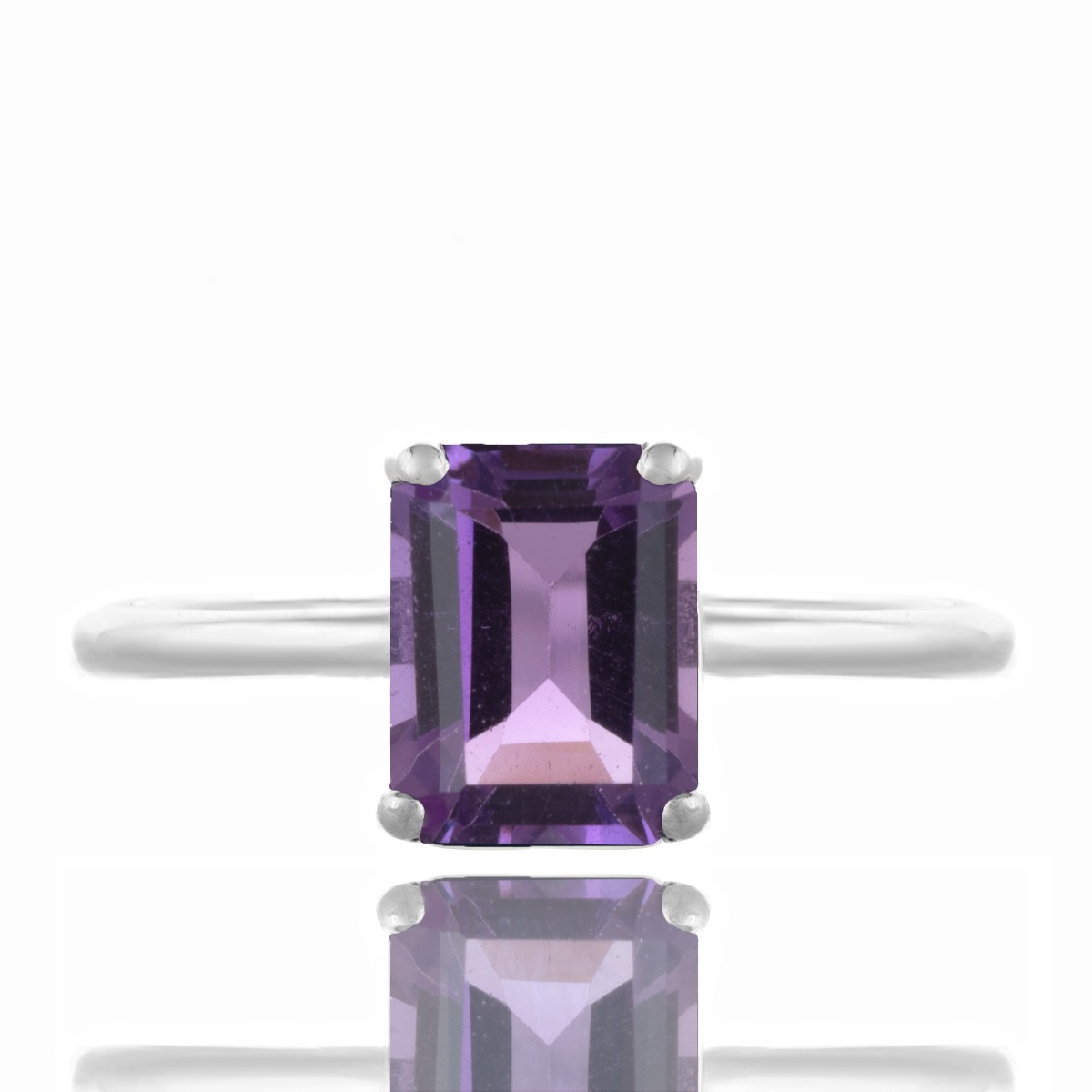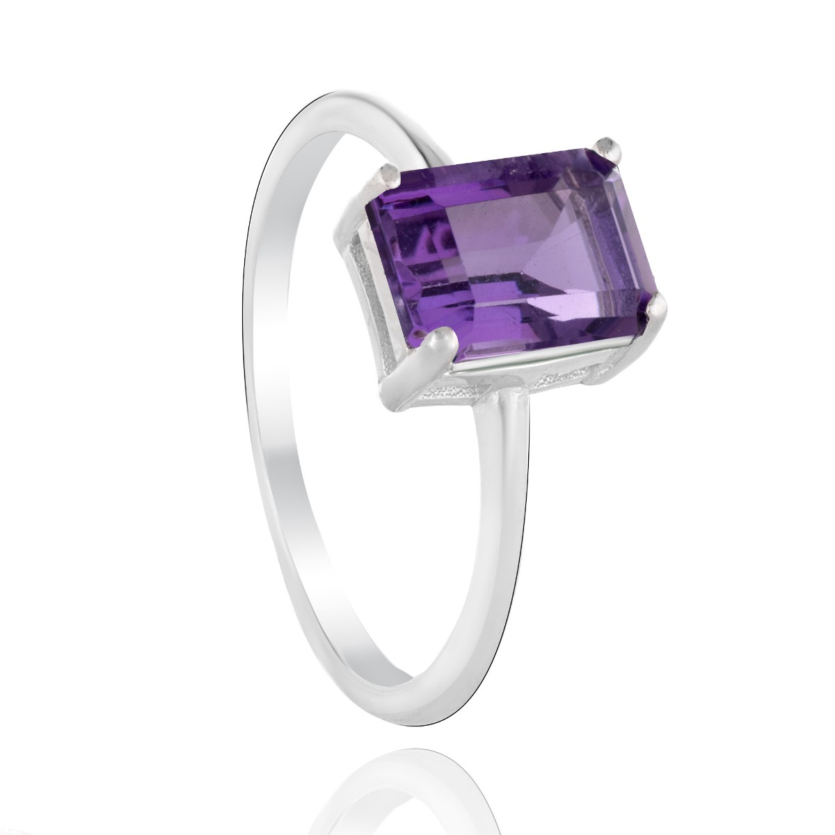 Добавете мистичен чар към визията си с този стилен сребърен пръстен с багетно изрязан естествен аметист.