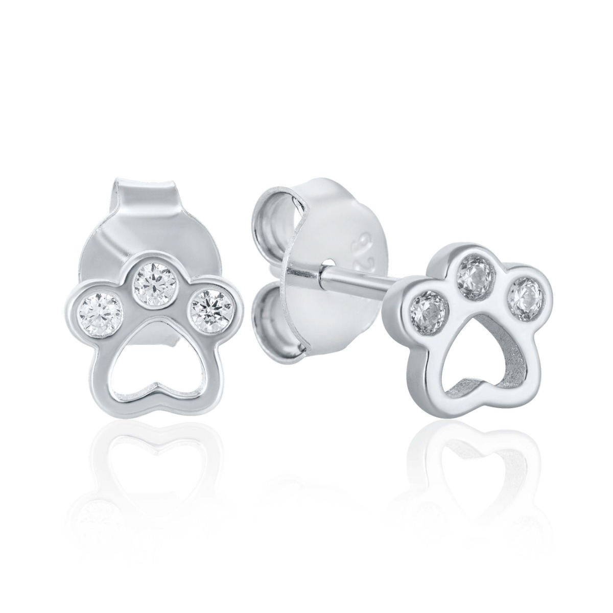 Тези нежни сребърни обеци във формата на лапички са идеалният аксесоар за всички любители на животни. Изработени от висококачествено сребро 925, те комбинират минималистичен силует с изискан блясък, благодарение на трите фино вградени циркона във всяка лапичка.