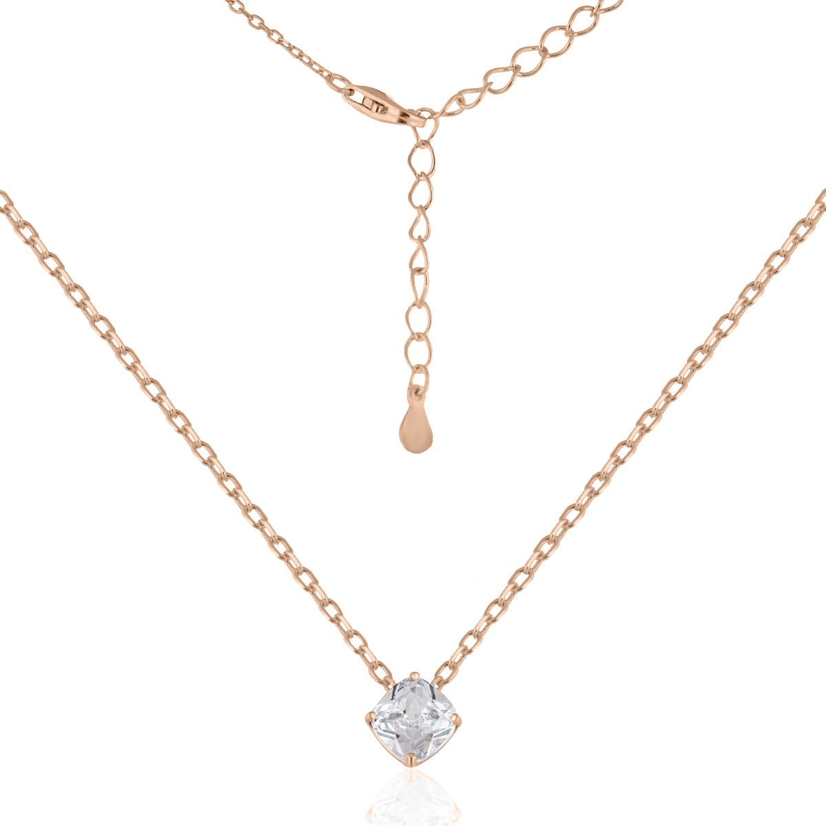 Стилно сребърно колие с централен циркон 6 мм – изработено от розово сребро 925 с регулируема дължина. Елегантен и бляскав акцент, който подчертава фината изтънченост на всяка визия.