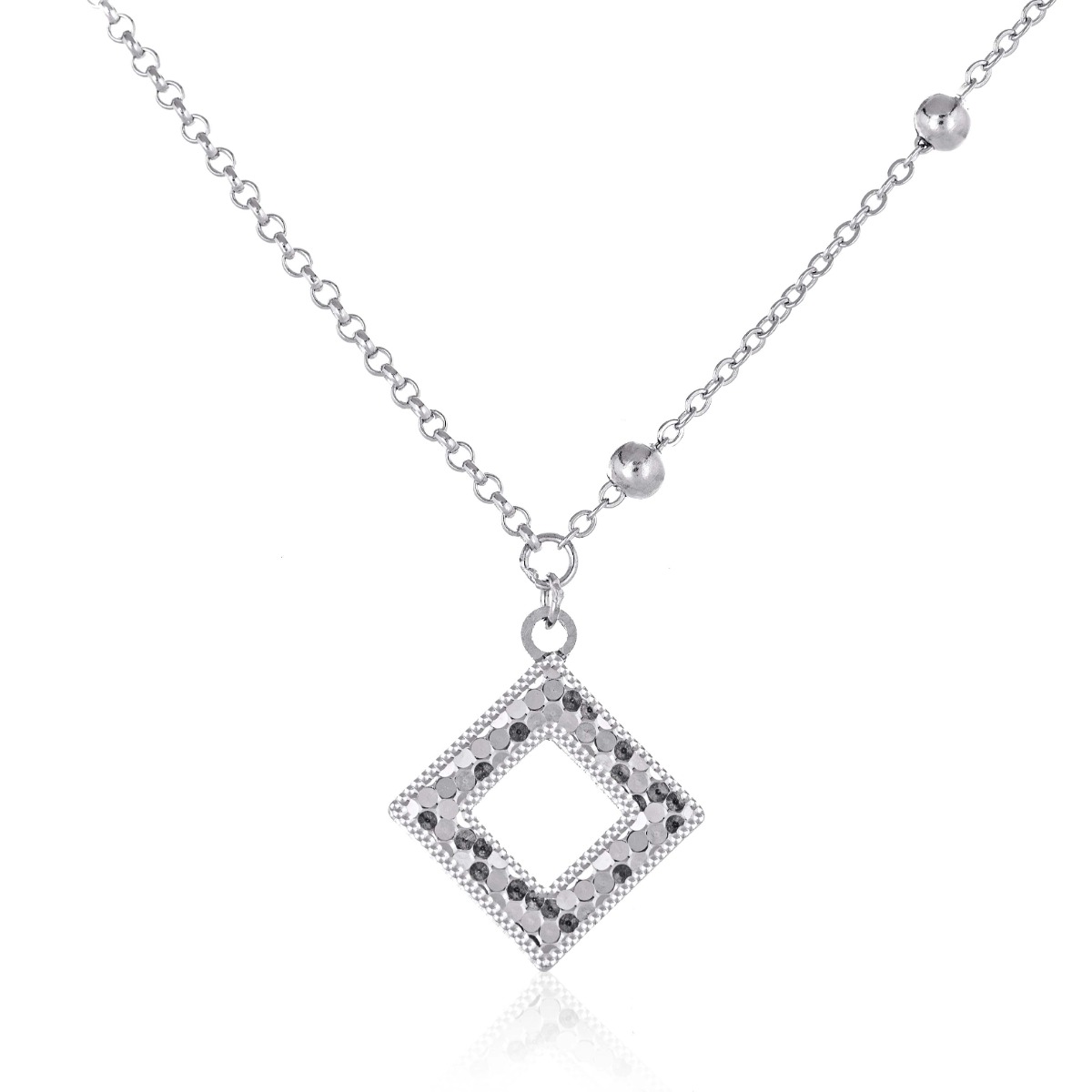 Красиво колие, с интересна висулка и детайли по верижката. Изработено от родирано сребро, с лесно закопчаване, това колие е страхотен избор за вашия ежедневен тоалет.