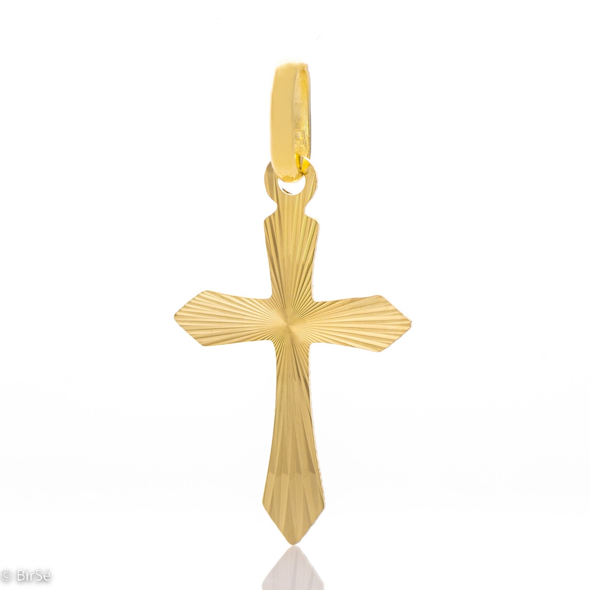 Изящен кръст с ефектно и изтънчено оформление на елементите и формите от класическо злато. Олекотено бижу със стилна изработка чрез лазерно оформление.