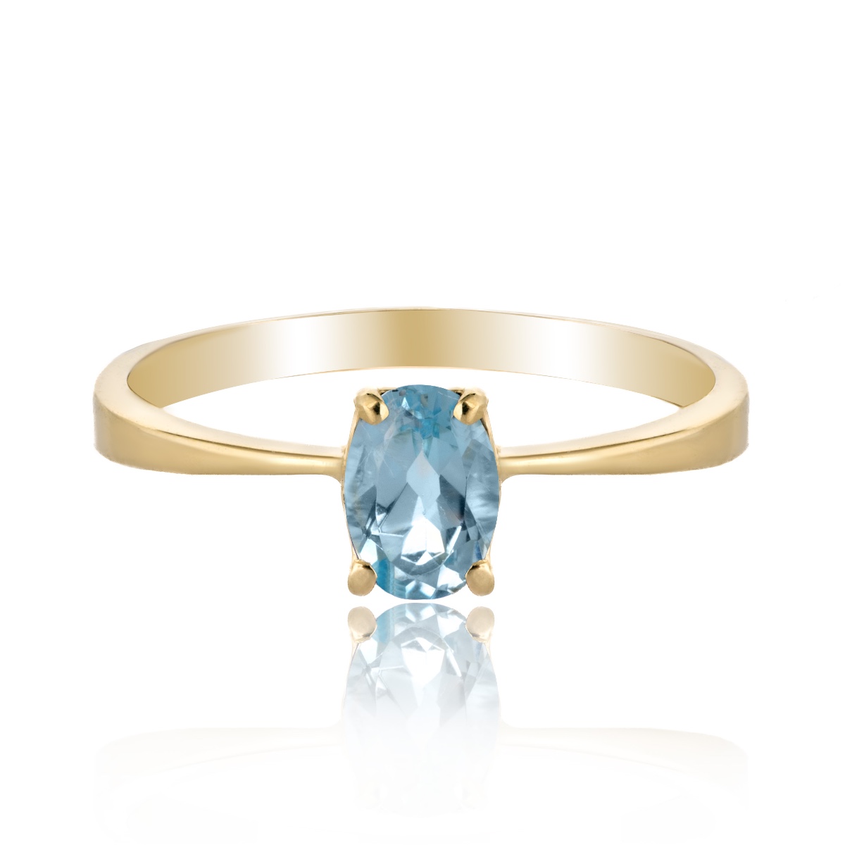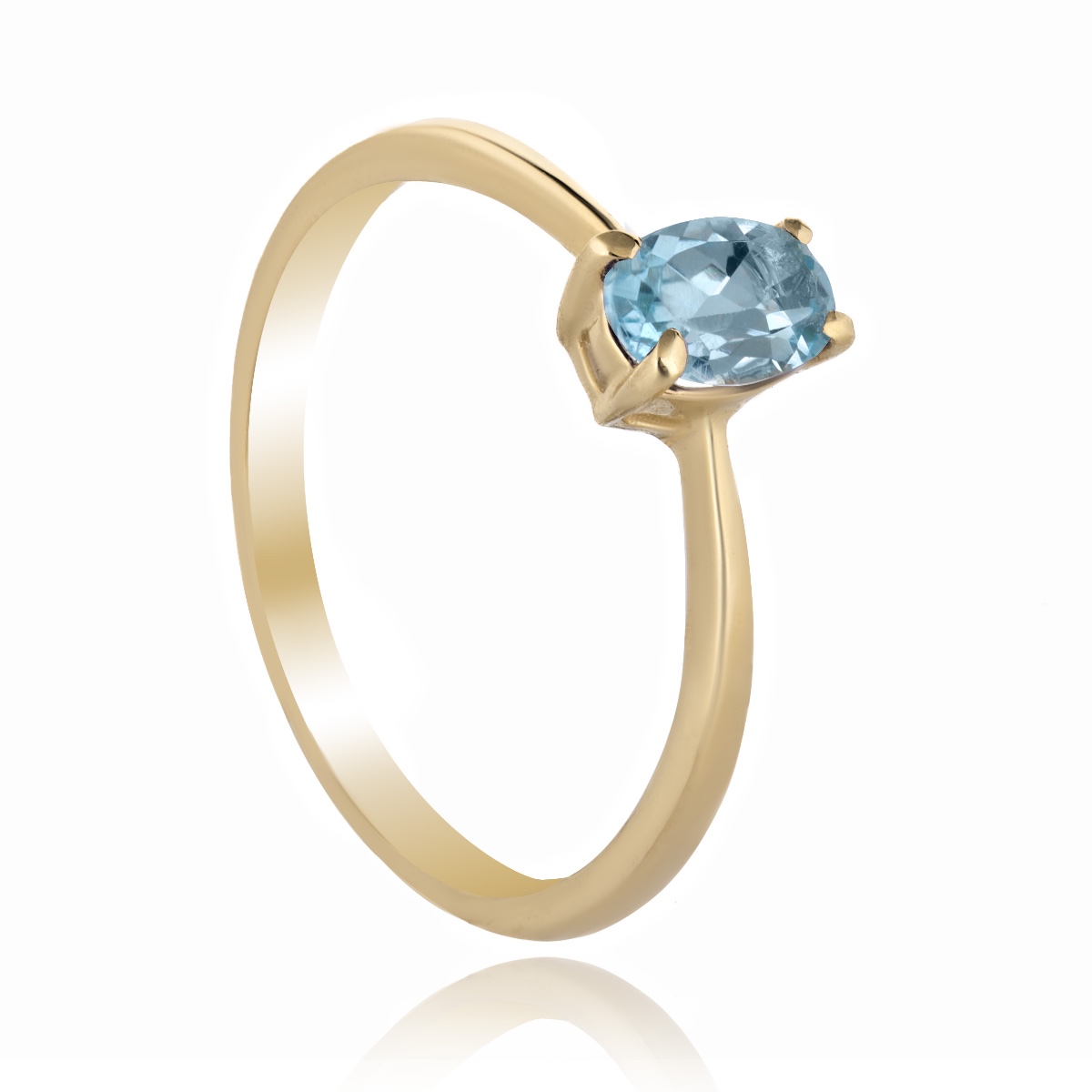 Елегантен дамски пръстен с нежна изработка изцяло от жълто злато, допълнено от сияен естествен камък син топаз. Може да се комбинира с висулка и обеци от същия модел. Всички бижута с естествени камъни са придружени от специален сертификат, удостоверяващ автентичността им. На този сертификат можем да изпишем и лично послание за Вас или за когото е бижуто. Вижте още информация тук.