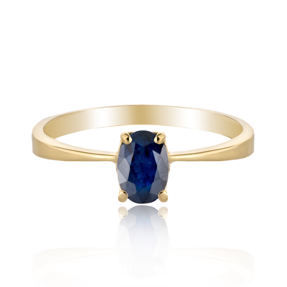 Елегантен дамски пръстен с нежна изработка изцяло от жълто злато, допълнено от сияен естествен камък сапфир. Може да се комбинира с висулка и обеци от същия модел. Всички бижута с естествени камъни са придружени от специален сертификат, удостоверяващ автентичността им. На този сертификат можем да изпишем и лично послание за Вас или за когото е бижуто. Вижте още информация тук.