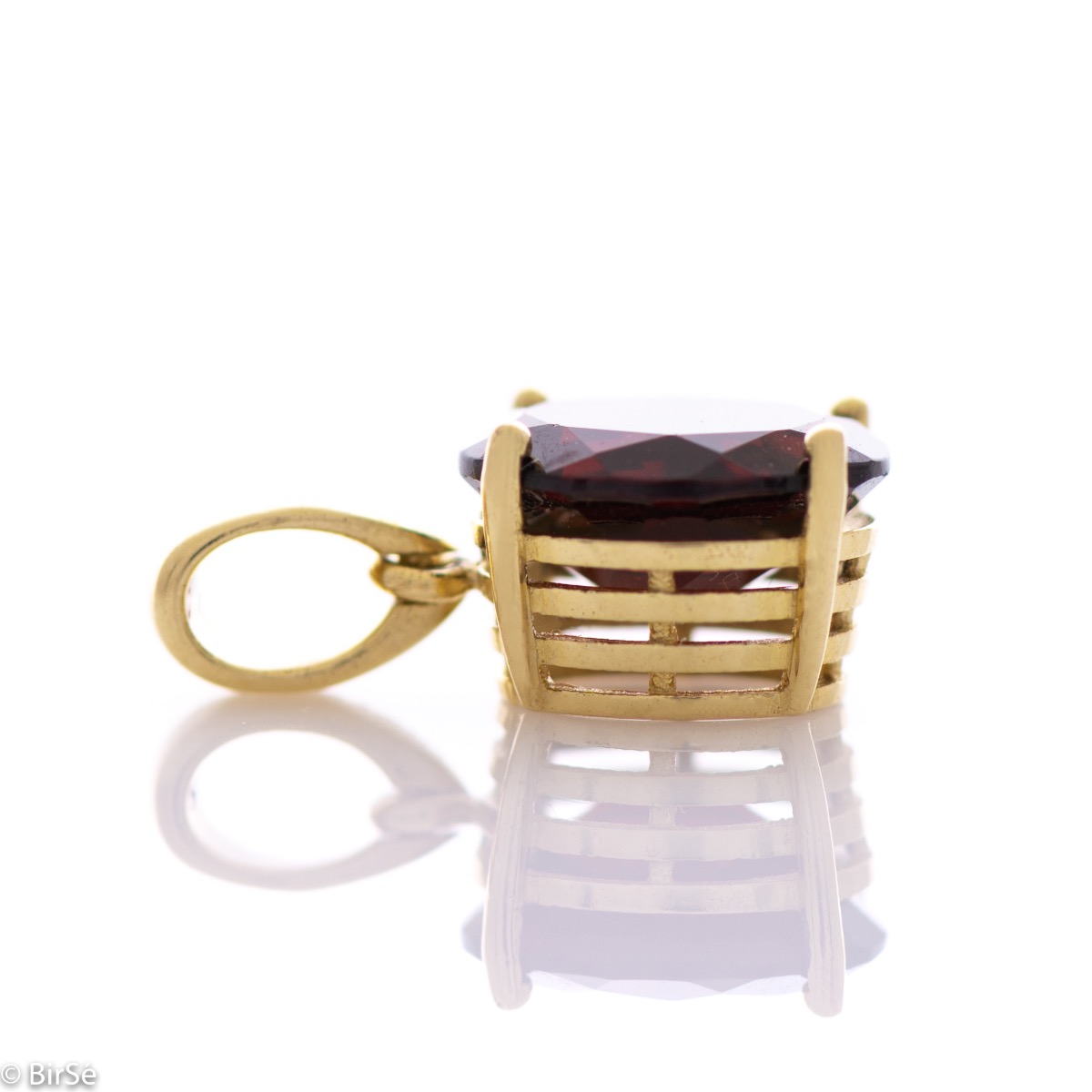 Елегантна дамска висулка с изчистен дизайн, съчетаващ нежна изработка изцяло от класическо жълто злато със сияен естествен камък гранат. Може да се комбинира с пръстен от същия модел. Всички бижута с естествени камъни са придружени от специален сертификат, удостоверяващ автентичността им. На този сертификат можем да изпишем и лично послание за Вас или за когото е бижуто. Вижте още информация тук.