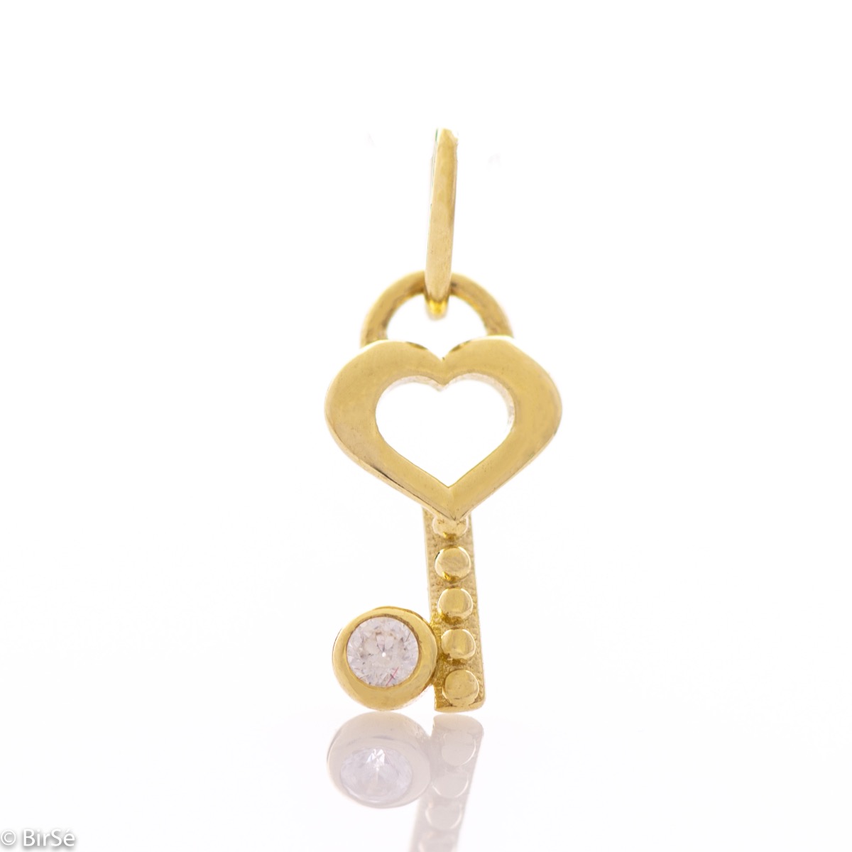 Изключителна златна висулка с форма на уникално малко ключе с нежна изработка изцяло от класическо жълто злато, допълнено от бляскаво цирконче.