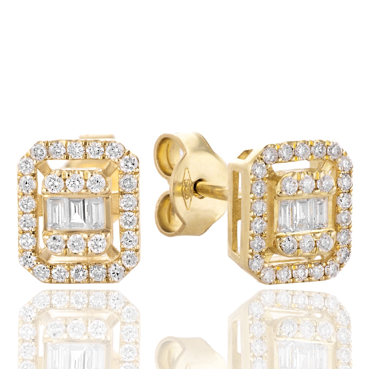 Нежни златни обеци - Диамант Багет 0,32 ct.