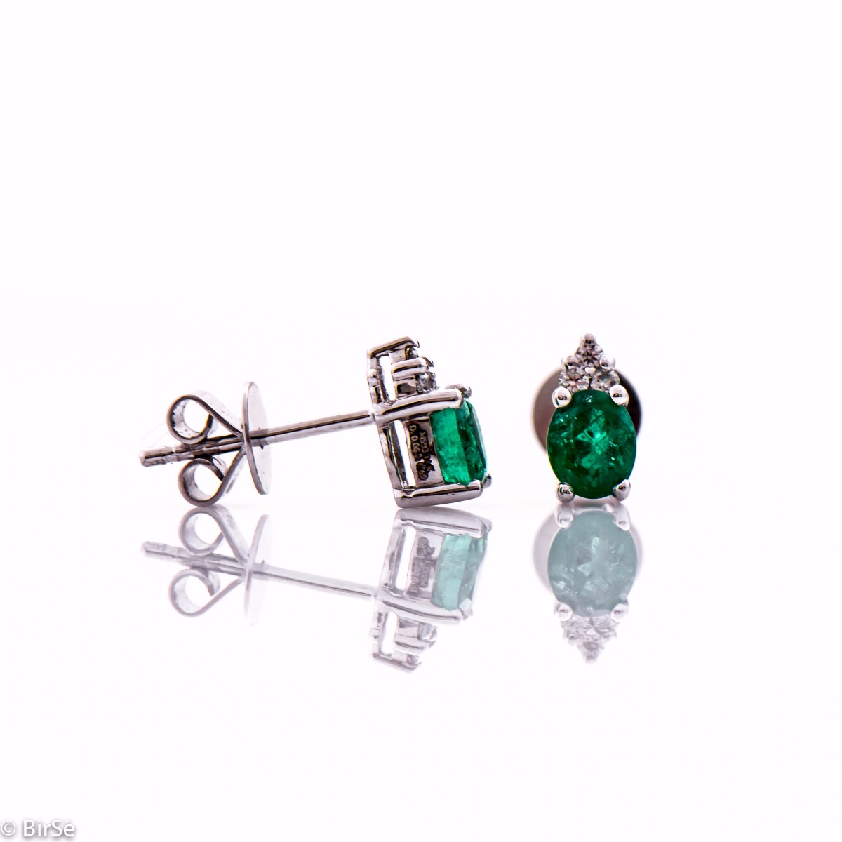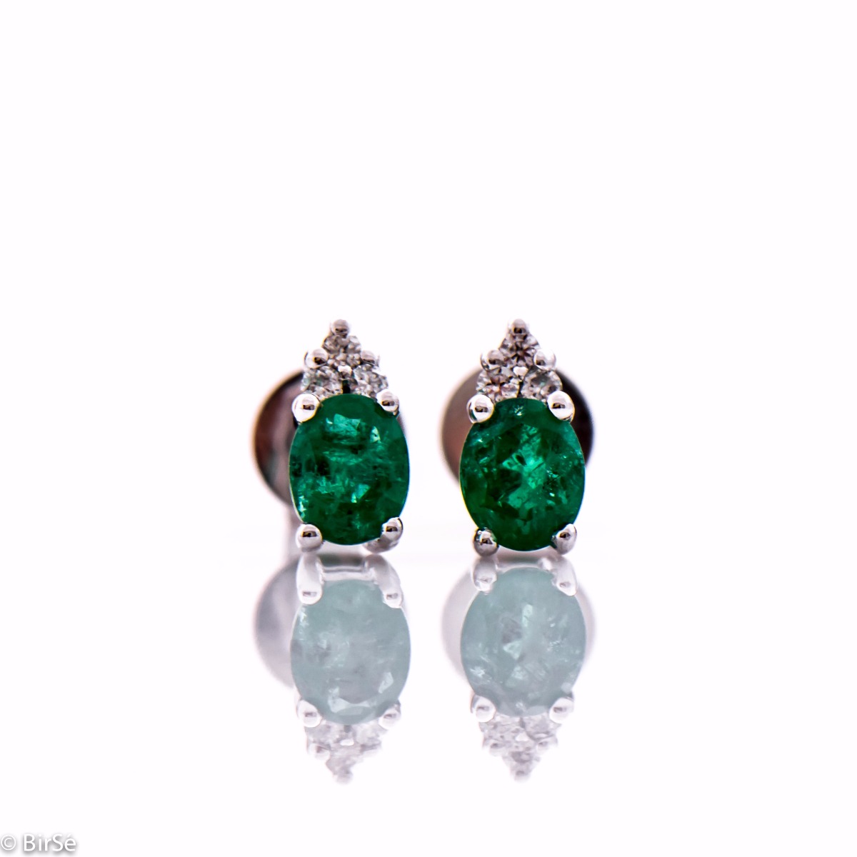 Нестихваща красота на естествен изумруд в царствени обици от бяло злато и брилянти. Страхотен избор за подарък за юбилей или друг официален повод.