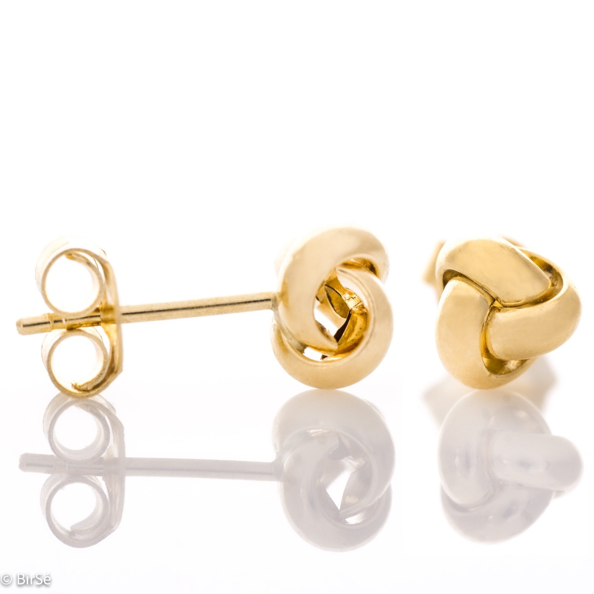 Стилни златни обици с ефектна визия и иновативен дизайн със закопчаване на щифт. Нежна композиционна изработка изцяло от класическо жълто злато.
