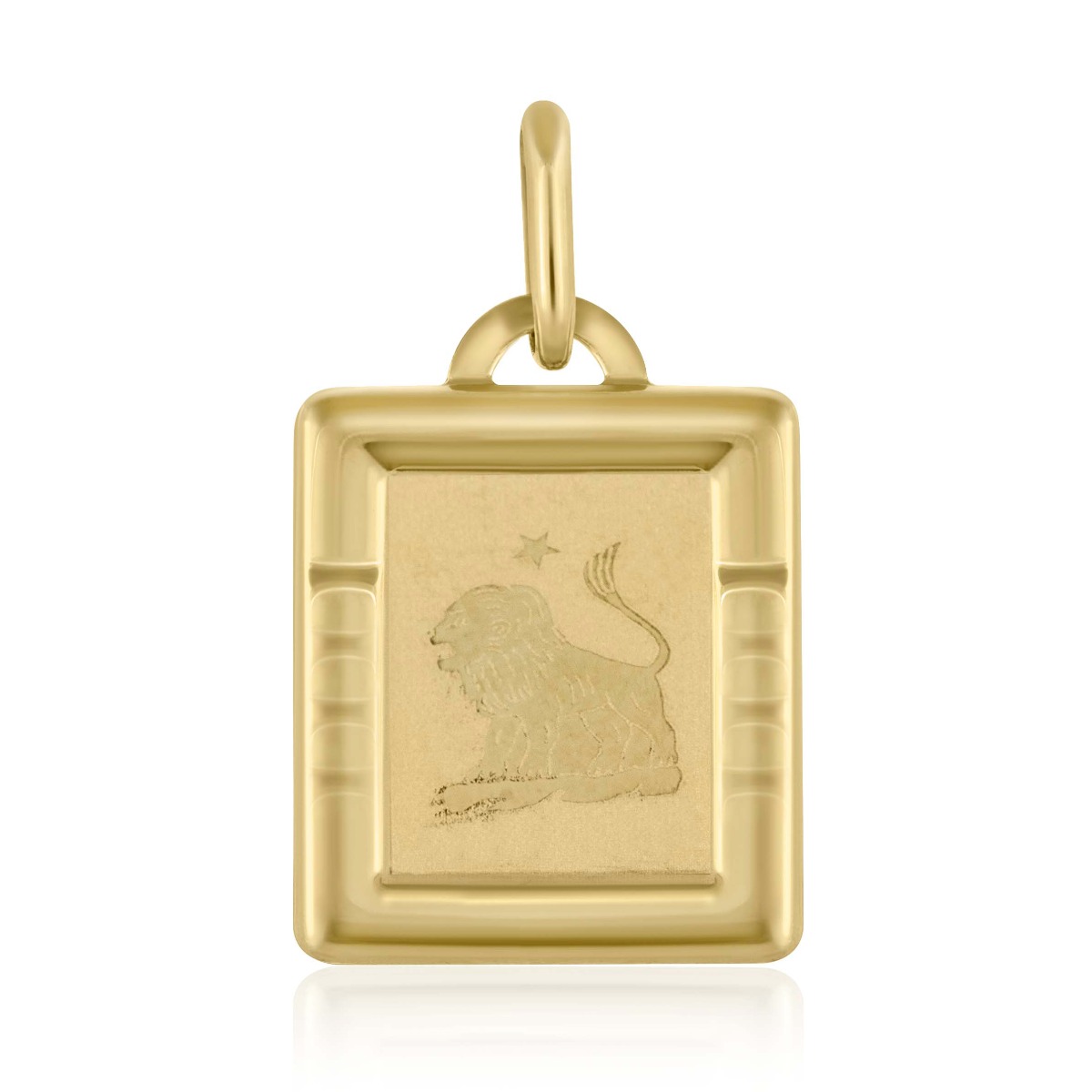 Елегантна изработка на плочка от класическо злато със зодиакален знак Лъв. Подходящ подарък за деца, дами и господа по различни поводи.